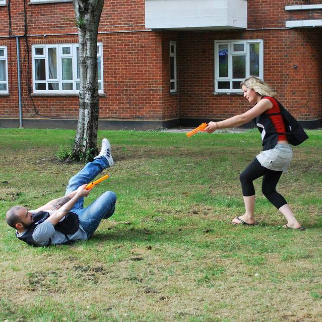 Spiel umfasst - 2 x Wasserpistolen und 2 x